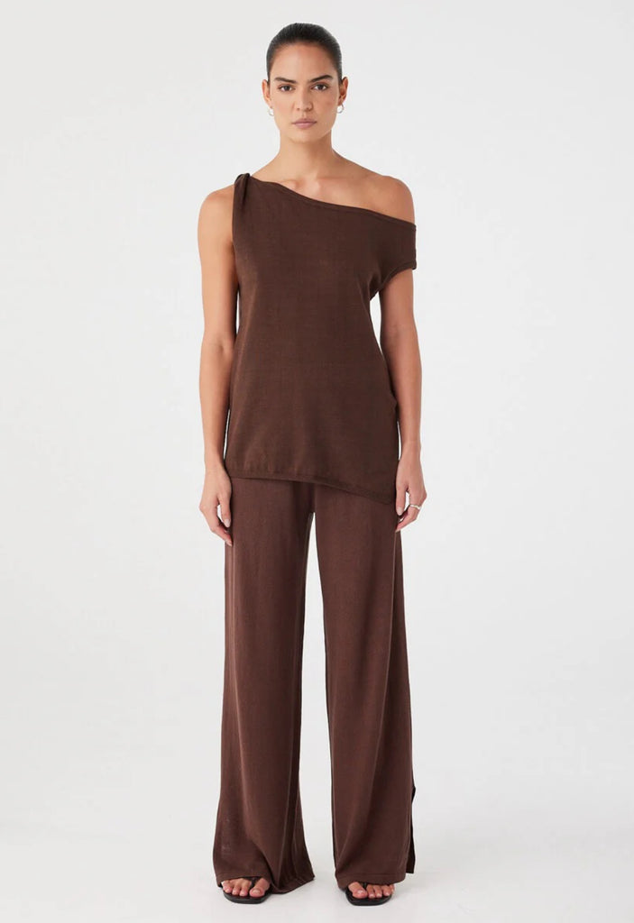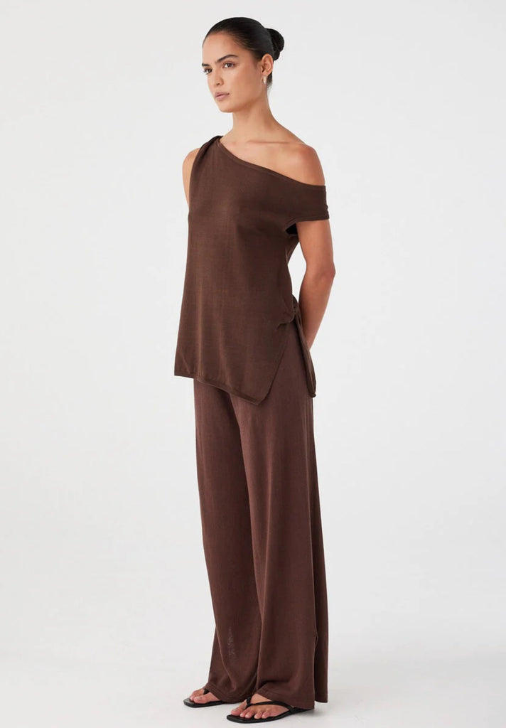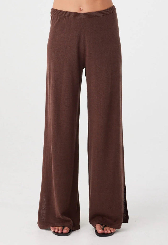 The Olympia Pant in Espresso is a relaxed, wide-leg silhouette crafted from a lightweight cotton knit. Designed with an elasticated waistband and side splits, it moves effortlessly with the body, offering comfort and ease through warmer seasons.