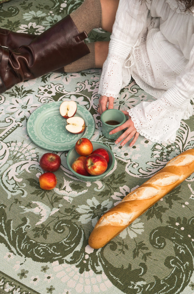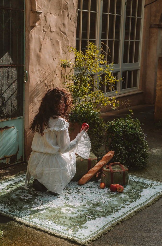 Our Ornate Floral Throw is a new dreamy green Fern colour to our Ornate ginger and Ornate Rosè, long time favourites of our Wandering Folk community. It features a vintage inspired woven, floral design with coloured cotton fringing.