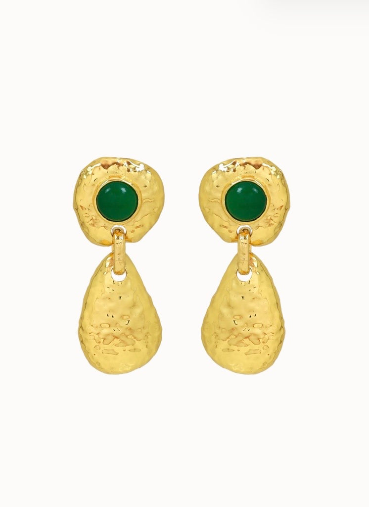 Featuring a vibrant Green Jade gemstone set in luxurious hammered gold, she makes simple feel styled. Sized to perfection giving you an elongating, face-framing moment - without feeling over the top.