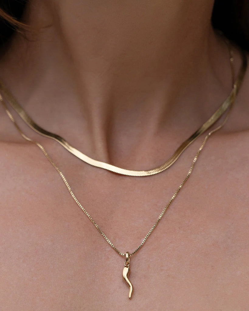 Bold and full of fortune, our iconic Cornicello Gold Charm Necklace adds the perfect touch of golden luck to elevate your everyday stack. Inspired by the Italian Cornicello horn, believed to protect its wearer and their loved ones, this striking piece is both a stylish finishing touch and a meaningful gift for someone special.