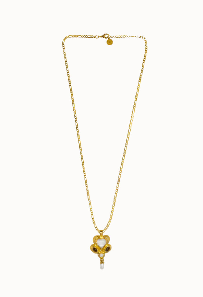 Delicate yet meaningful, the Diya Necklace pays homage to the heart — a motif we’ve returned to time and again over the past decade. Reimagined through a modern lens, this teardrop-shaped heart features Freshwater Pearl, Smoky Quartz and Crystal Quartz Gemstones, each chosen for their subtle sparkle and depth. Suspended on a fine figaro chain with a graceful droplet detail, the Diya is a quiet statement — feminine, fluid, and a reflection of the enduring symbols that shape our design journey.