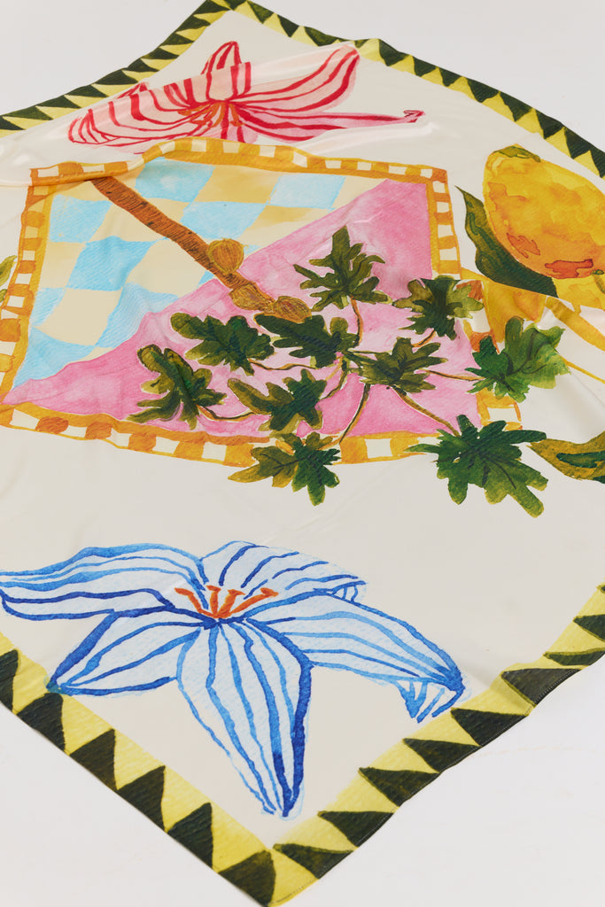 A hero accessory designed for endless styling, the Palm Springs Scarf is cut from a soft silk viscose blend and finished with our vibrant hand painted Palm Springs artwork. Oversized for versatility, it can be worn multiple ways to bring colour and art into everyday dressing.