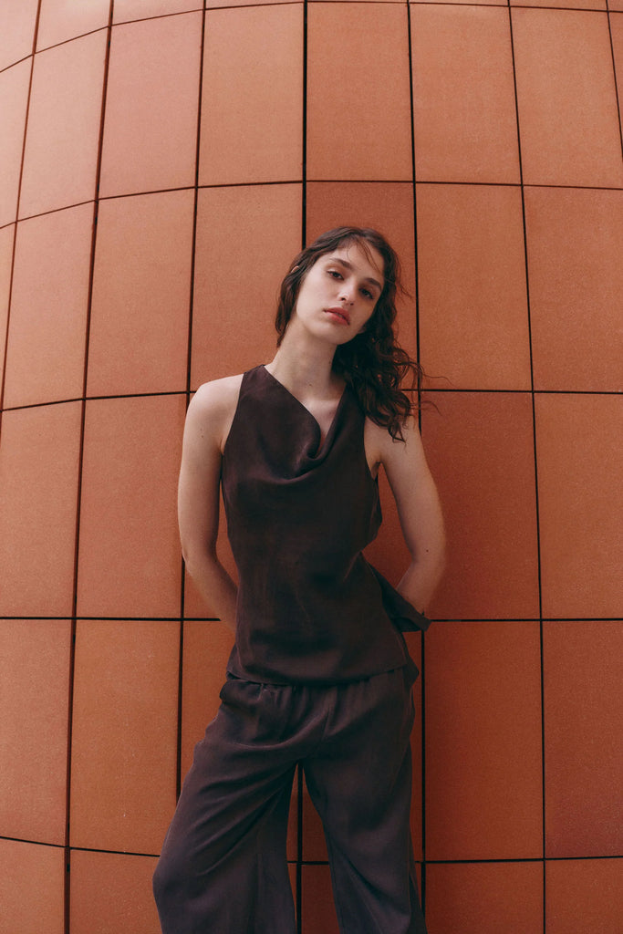 The Raven Cupro Top is made in our signature cupro fabrication with a smooth suede hand feel. Cut on the bias, this silhouette drapes over the body softly and finishes below the hip. Features include a soft cowl neckline, keyhole opening at centre back and side seam slits.