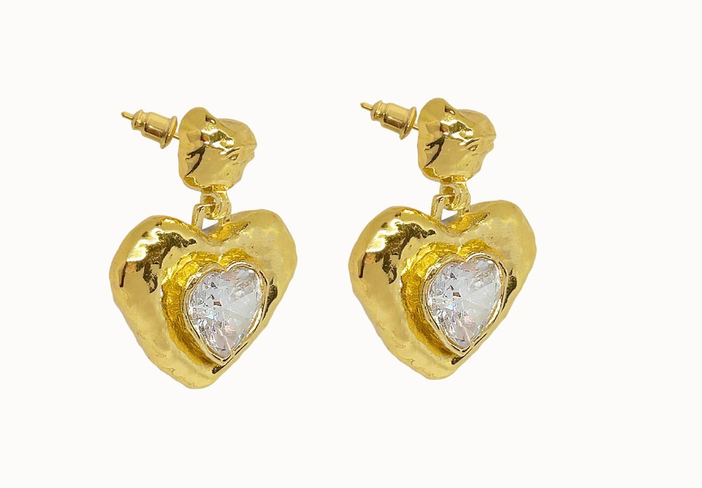 A playful take on a classic feminine motif, the Suri Earrings reimagine the heart through the lens of traditional craftsmanship. Hand-finished in radiant gold with a sparkling White CZ gemstone, the Suri earrings merge age-old design techniques with a fresh, modern spirit. Bold yet tender, they speak to the contemporary woman who honours the past while embracing her own story.