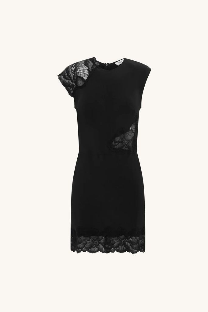 Discover timeless allure with the exclusive Lily Silk Lace Mini Dress in Black—our best-selling signature shade. Crafted from our 100% silk crepe with delicate nylon lace, this lined mini dress features lace cutouts at the shoulders and waist, finished with a lace hem. The bias-cut silhouette offers an elegant fit for any occasion.