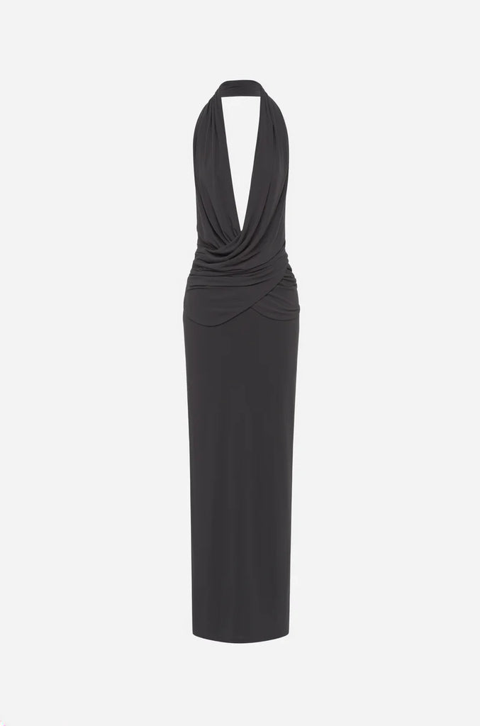 Crafted in our signature cupro jersey fabrication, the Cabana Cupro Dress drapes effortlessly across the body. Featuring a halter neckline and drapping across the waist, this midi length silhouette evokes understanded elegance.