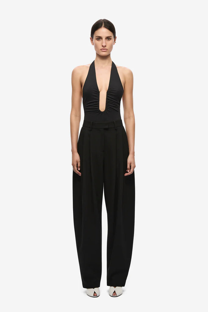 The iconic MISHA Jennifer neckline imagined in a bodysuit. The piece has an open-back and is crafted from the Jennifer's signature cupro jersey. Finished with an integrated u-wire to shape the neckline.
